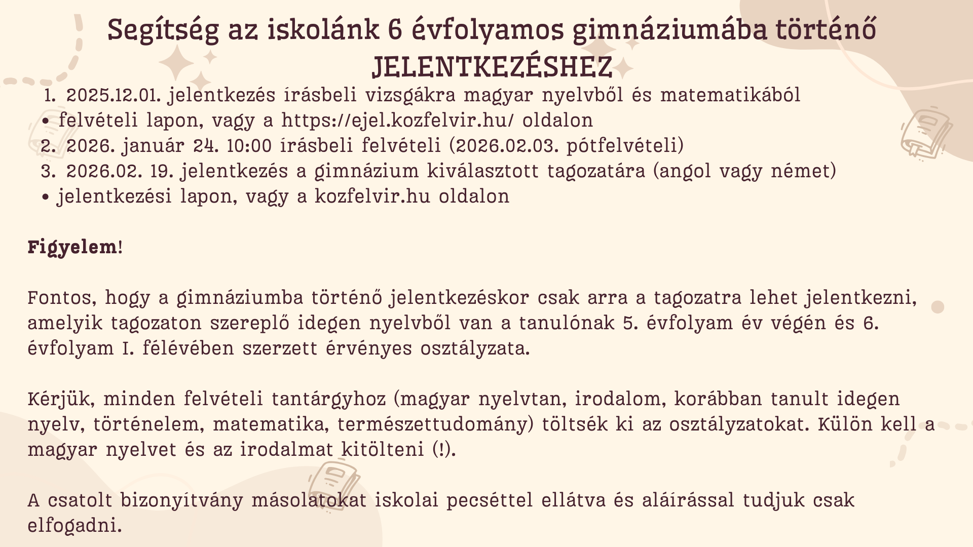 Segítség a gimnáziumi felvételi eljáráshoz